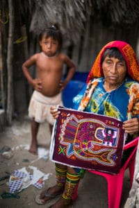 In the photo: A Kuna woman with a Mola. Photo Credit: Rebecca Hui