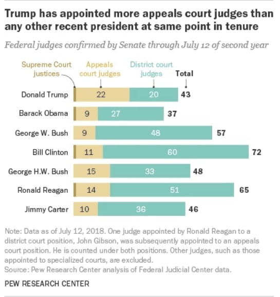 Source: Pew Research Center. (Screenshot; note data stops at July 12, 2018 and does not include the second Supreme Court appointment made by Trump)