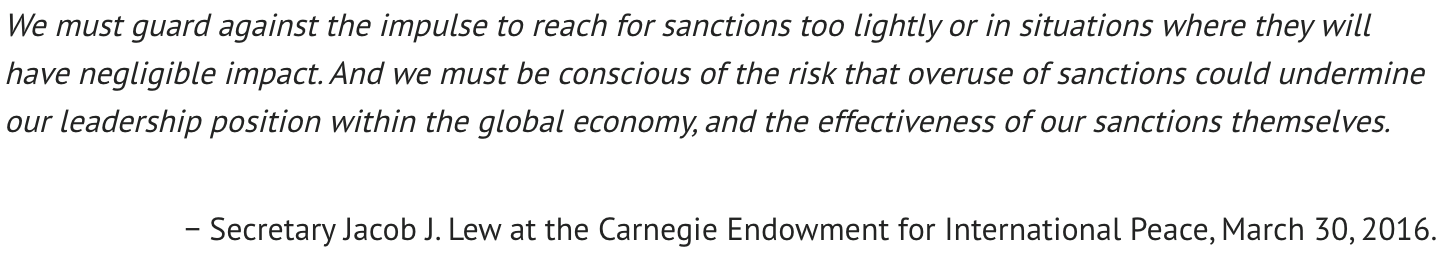 Trump’s sanctions have been the subject of observation and criticism by government officials, such as Peter E.Harrell, deputy assistant secretary for counter threat finance and sanctions in the U.S. from 2012 to 2014. He asserts that Trump uses sanctions with an “unprecedented aggressiveness,” and highlights the increasingly blurred lines between ordinary sanctions and the secondary sanctions which serve the purpose of pressuring third parties into stopping activities with a sanctioned country — or have their access to the sanctioning country cut-off.
