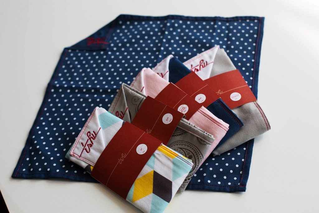 Good question! At first, I had the desire to bring TSHU’s offer to include many more products that would promote waste reduction, but now I’m thinking I would much rather focus on one single product and make it the best in the world. We recently moved to Europe and our biggest challenge in months/years to come will be finding partners that fit with our vision and values and finding a way to better our hankies and expand our line of handkerchiefs and handkerchief holders. Short term, we are very excited to announce that we will be launching a new line made from cloth scraps handed down by talented designers Bleu Tango in Paris. Indeed, we’ll be releasing limited editions of handkerchiefs made from lovely, unique prints left over from previous collections.
