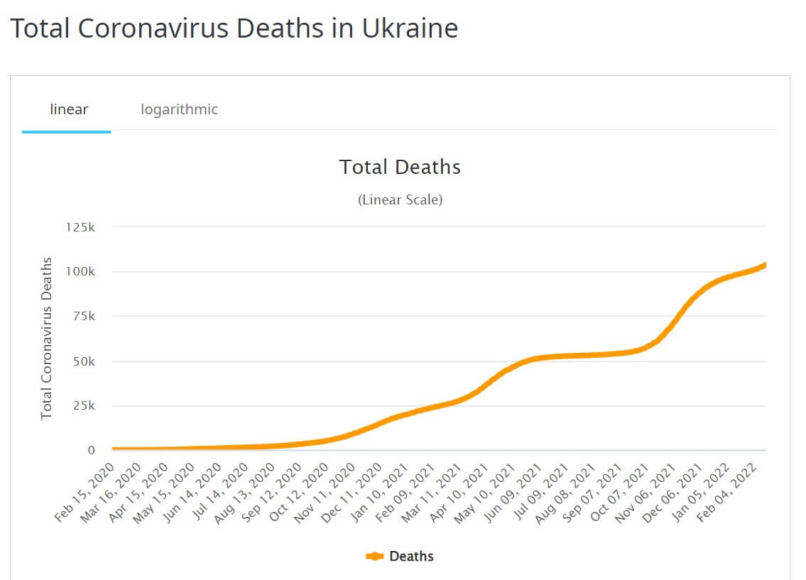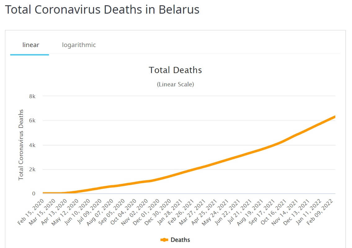 Belarus, which is Russia’s ally and military training exercise partner threatening Ukraine, has a much smaller population than either Ukraine or Russia, yet it has had over 860,000 COVID cases, over 6, 300 deaths, and almost 99,000 cases in the last two weeks.
