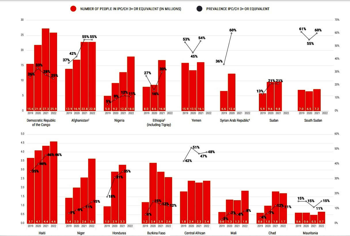 These countries all had parts of populations identified or projected to experience starvation and death – as per the Integrated Food Security Phase Classification [IPC global platform] of countries requiring the most urgent attention.