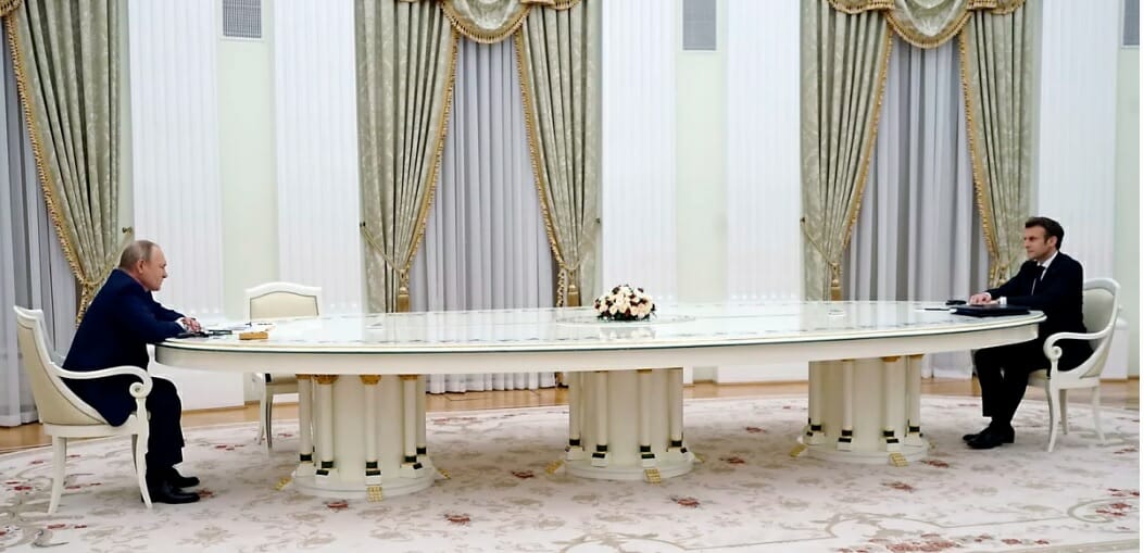 Likewise, Macron’s talk with Putin, aside from yielding a memorable photo of the two separated by an extra-long table during their 5-hour talk, yielded no concrete results, despite words of reassurance from the French leader that while Putin would not attack, he was ready to negotiate “security guarantees that will allow us to build a new order of security and stability in Europe.”