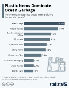 According to the International Union for Conservation of Nature, IUCN’s, latest report released in November of 2021: “at least 14 million tons of plastic end up in the ocean every year, and plastic makes up 80% of all marine debris found from surface waters to deep-sea sediments.”