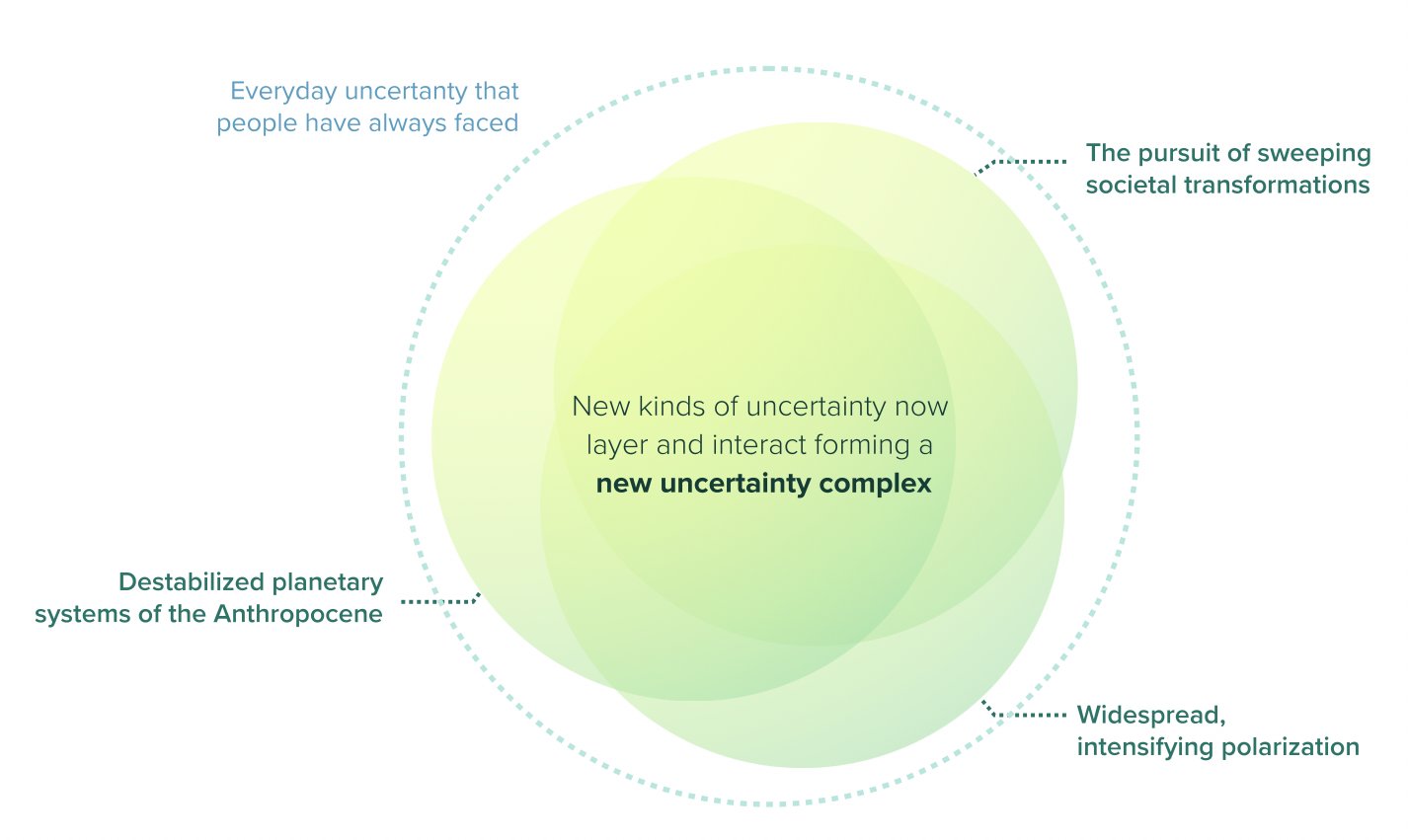 They attribute our collective uncertainty to the compounding of three “novel layers of uncertainties” that are interacting “to create new kinds of uncertainty… at a speed and scale beyond what humans have experienced before.”