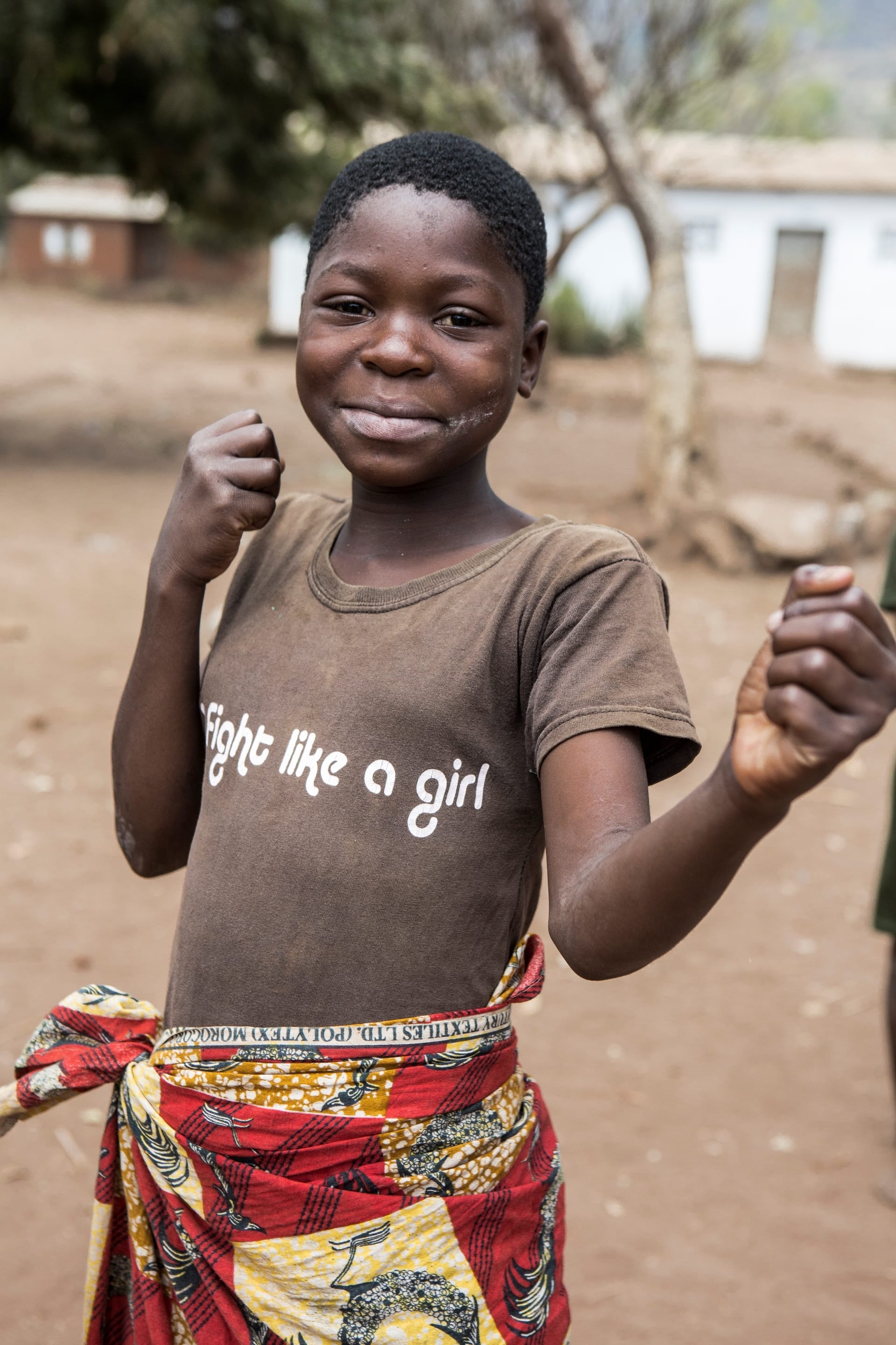 In the Photo: Girl wearing t-shirt with slogan ‘fight like a girl’ Photo Credit: Plan International