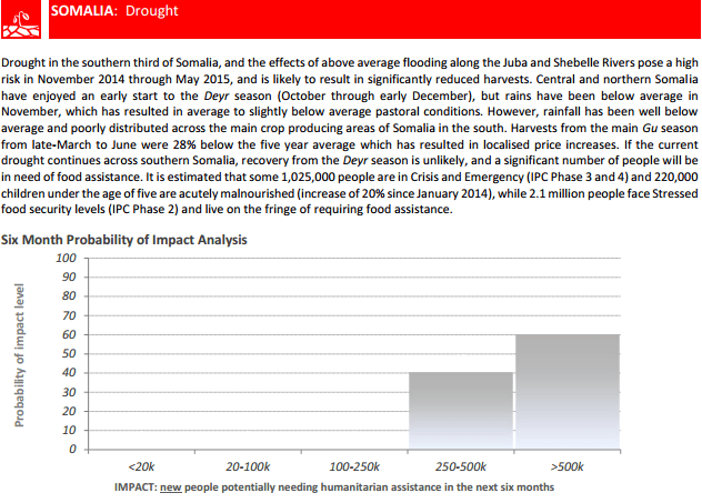 In short, because of prolonged drought, more than 500,000 people will require assistance sometime in May-June 2015, if not before.