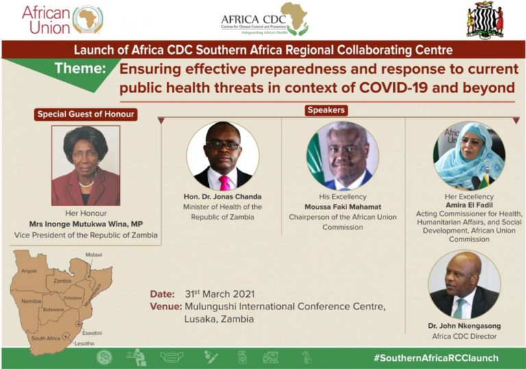 The Africa CDC is actively pursuing its goals and on 31 March 2021, it announced the launch of its Southern Africa Regional Collaborating Centre (SA-RCC), hosted by Zambia and serving the 10 African Union Member States in the Southern Africa region: