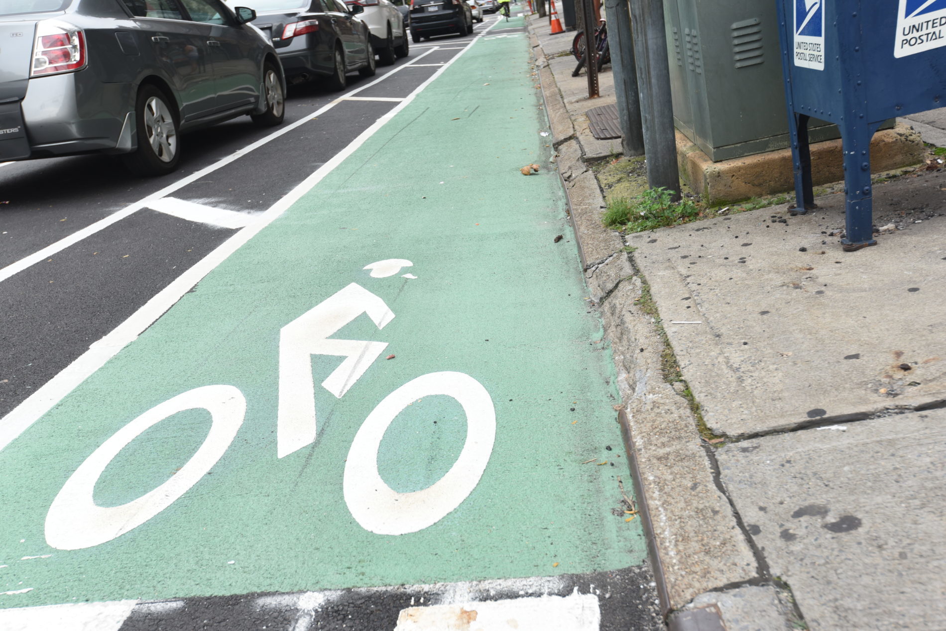 In The Photo: The new protected bike lane on 43rd Avenue in Queens. Photo Credit: Drew Feliciano