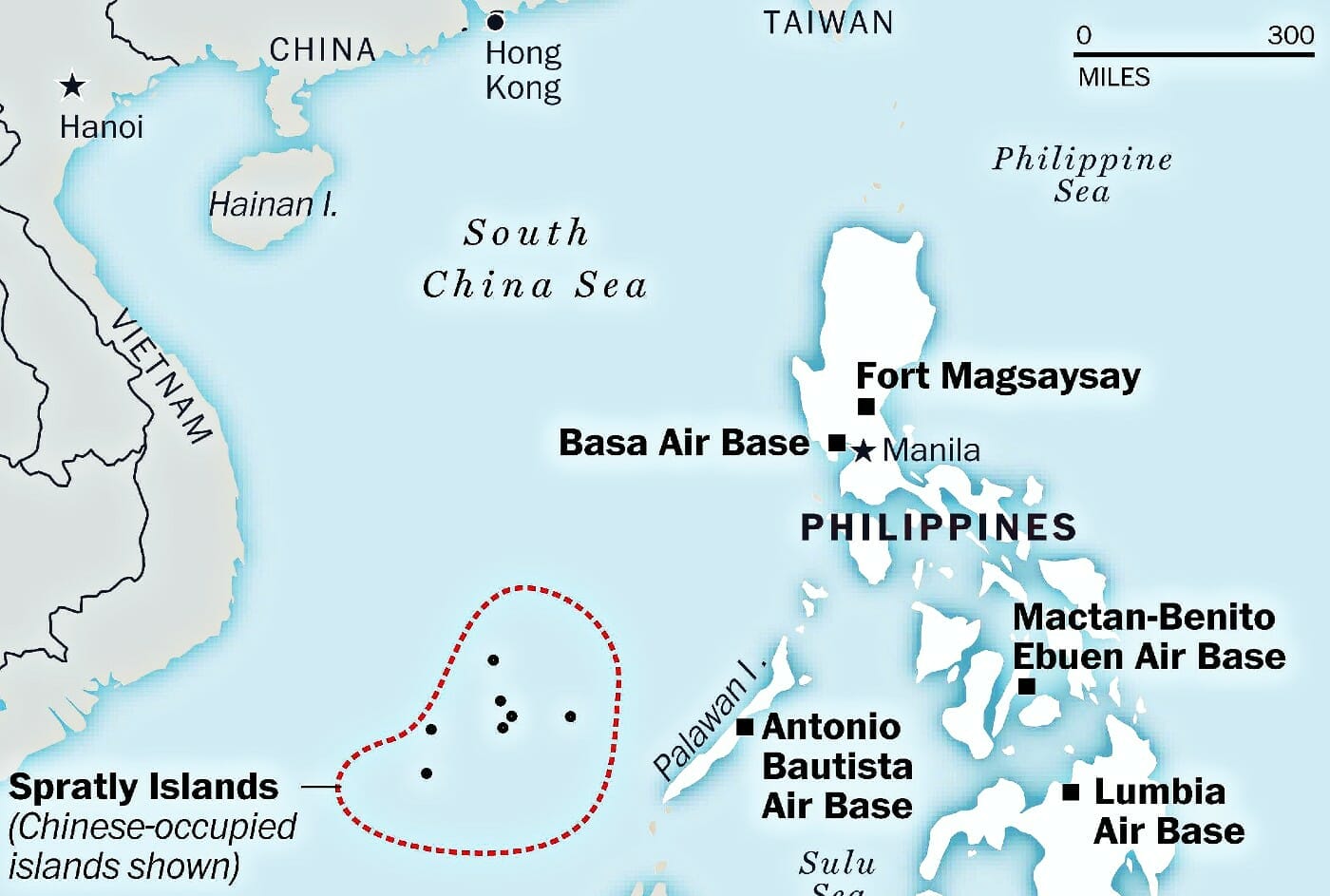 The Spratly Islands have always been a highly contested area with all neighboring countries, Vietnam, the Philippines, and Taiwan, laying claim to them in addition to China. As far back as 1987, China had installed a marine observation station on the Fiery Cross Reef (677 acres) and in 2015 it sent military troops to it, turning it into one of several military bases.