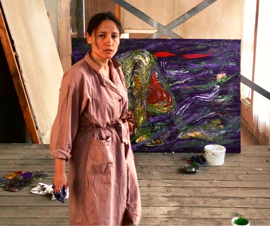 Yona plans to augment the final part of her project “Hunger” with another 20 monumental canvases dedicated to famine-caused cannibalism and based on filmed witness accounts, which she captured in 2018. She put those filmed accounts together in a video titled “Video-painting ‘ANTHROPOPHAGE’“: