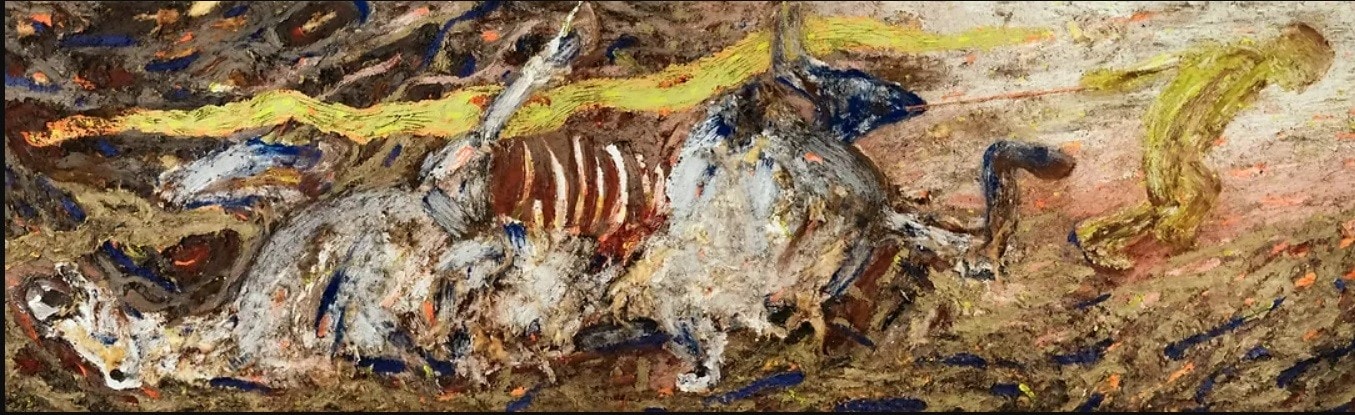 Editor’s Note: The opinions expressed here by the authors are their own, not those of Impakter.com — In the Featured Photo: Looking at this painting, Yeat’s famous phrase comes to mind: “A terrible beauty is born”. This is a detail of “A boy with a dead horse”, one of Yona Tukuser’s most recent paintings (2022) shown at her exhibition at the National Gallery of Bulgaria (September-November 2022) – oil on canvas 120 x 400 cm