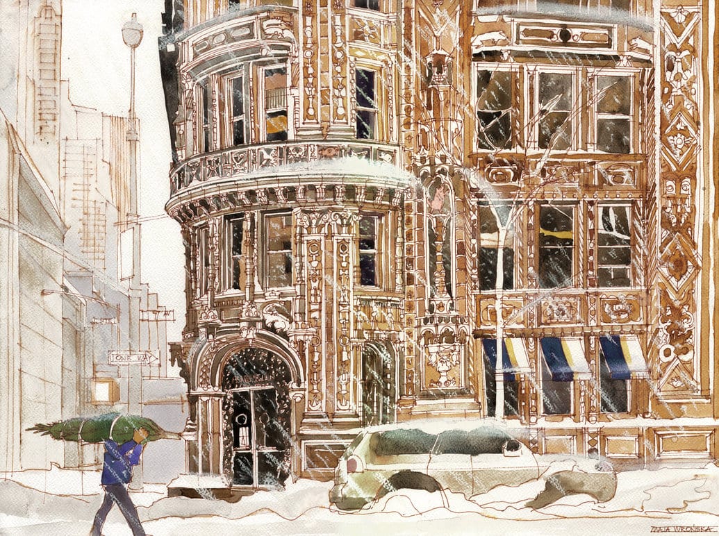 Maja Wrońska is an architect and freelance illustrator who creates magnificent and vibrant, watercolor illustrations of European architecture. As an architect and an artist, she balances the the elements of drawing and perspective in her work including dramatic and detailed use of line and pastel watercolors. Preferring to paint “once inspiration hits” and enjoying the unbridled feeling the accompanies creating a work with no limits or boundaries she is an inspiration to many choosing to cultivate a creative skill.