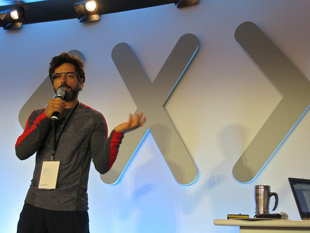 In the photo: Sergey Brin Solves for X sporting Google Glass – Photo Credit: Steve Jurvetson