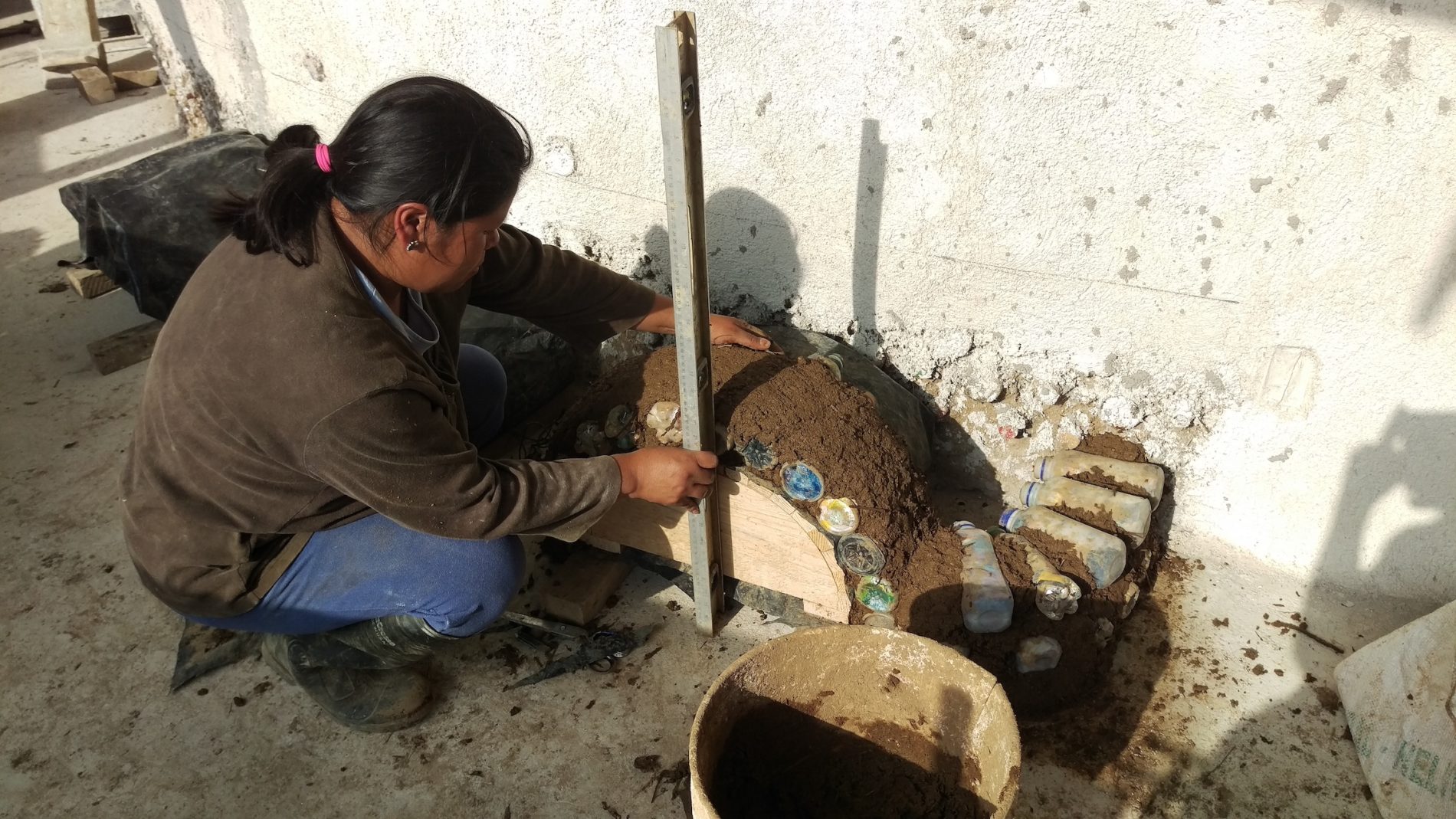 Managing and carefully sorting my own trash for three months made me realize how thoughtlessly I had been producing waste and how important it was to change my habits. The local workers taught me what sustainable design on a budget meant. Working by trial and error and thinking outside the box are crucial: Tires can make great playgrounds, stairs, walls or seismic-resistant retaining walls. Glass bottles laid in mortar can serve as colorful and beautiful light sources in walls or roofs. Cans can be compressed to shingles or be used structurally. Stuffed plastic bottles are called eco-bricks and create reinforcement in walls as well.
