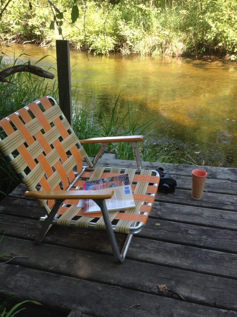 Thirty years later, my overgrown river banks provide shade for steelhead to linger and feed; I see them every autumn along with abundant salmon, on their way from Lake Michigan to spawn in one of the many clear-running Betsie tributaries. Fisherfolk cast into our stretch of river, so I protect the banks from their scrambling by offering parking and access if they agree to use our river stairs instead.