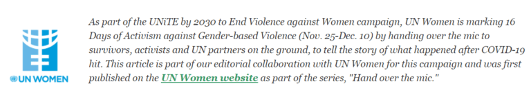 “COVID-19 has showed us that global solidarity is possible, that we can win the battle against stigma and violence together. Violence against women and girls is a crime and a human rights violation. Many marginalized women, including women living with HIV, who experience violence cannot report the violence or ask for help. We all have a duty to check on anyone who might be at risk of gender-based violence.”