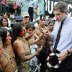 In the photo: A Secoya elder stands in front of a banner reading ‘Justice’ during a demonstration at the start of the trial against Chevron in Lago Agrio, Ecuador.