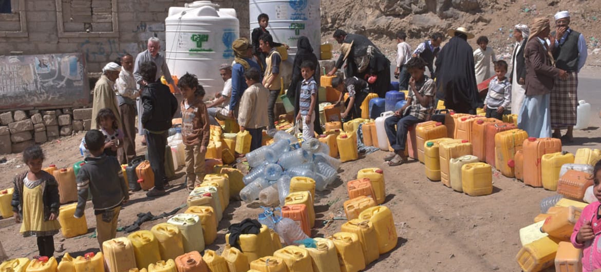 IN THE PHOTO: PEOPLE QUEUING FOR CLEAN WATER IN YEMEN PHOTO CREDIT: UNICEF