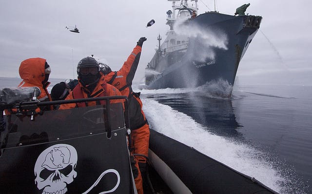 PW: Yeah, it was effective. But two of the boats snuck into Cape Verde. We have a boat called the Jairo Mora Sandoval that was there doing conservation work. When Peter Hammarstedt, who was captain on the Bob Barker, landed in Cape Verde, he discovered them. “There’s the two! Those are the two boats that were in Antarctica,” he said. He went to the Cape Verde authorities and had them arrested. Meanwhile the Viking was arrested in Malaysia. Thailand arrested the Kunlun. But the Kunlun and the Viking are now back in the Southern Ocean. Next month the Steve Irwin heads down to get after them again.
