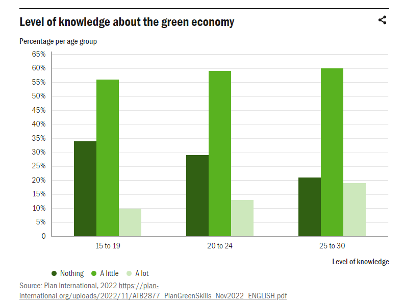 A global survey found that less than one in three young people (29%) aged 15 to 30 feel competent in the skills they believe are needed to do jobs that tackle climate change, with young women feeling less competent than young men. Additionally, the survey revealed that only 14% of all respondents expressed a high level of knowledge about the green economy.